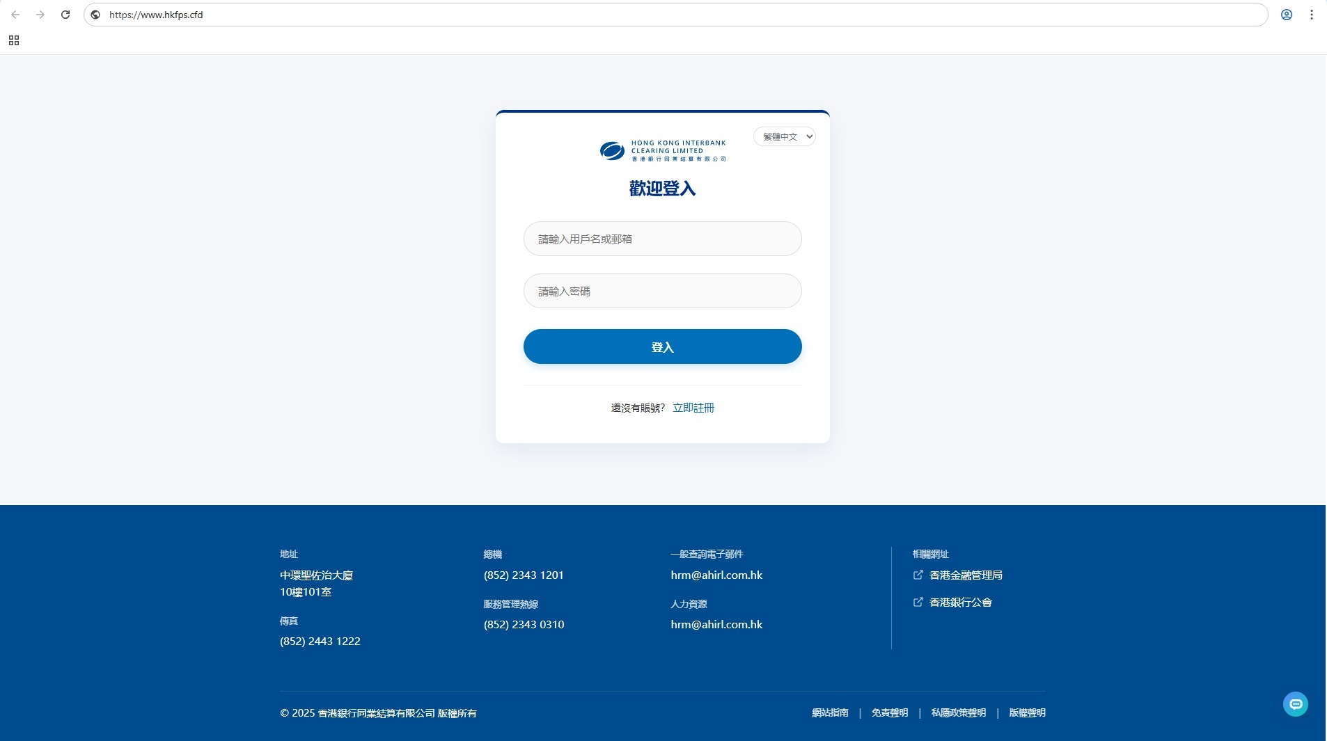香港銀行同業結算有限公司提示會員及市民慎防冒充本公司的偽冒網站(https://www.fpshk.lat)。該偽冒網站誘導用戶提供登入資料,並引導用戶與冒充客服的人員進行WhatsApp對話。